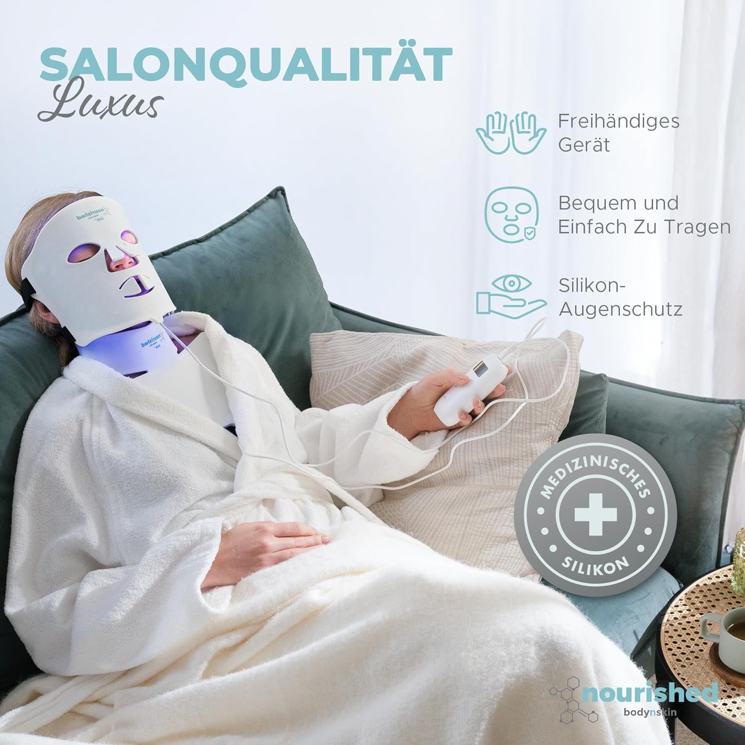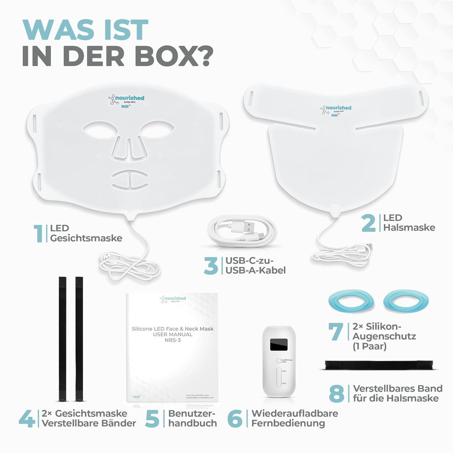 LED-Maske für Gesicht & Hals: Rot- & Blaulicht + Nahinfrarot. 228 LEDs gegen Falten & Anti-Aging. Professionelles Hautpflege-Kombi-Set.