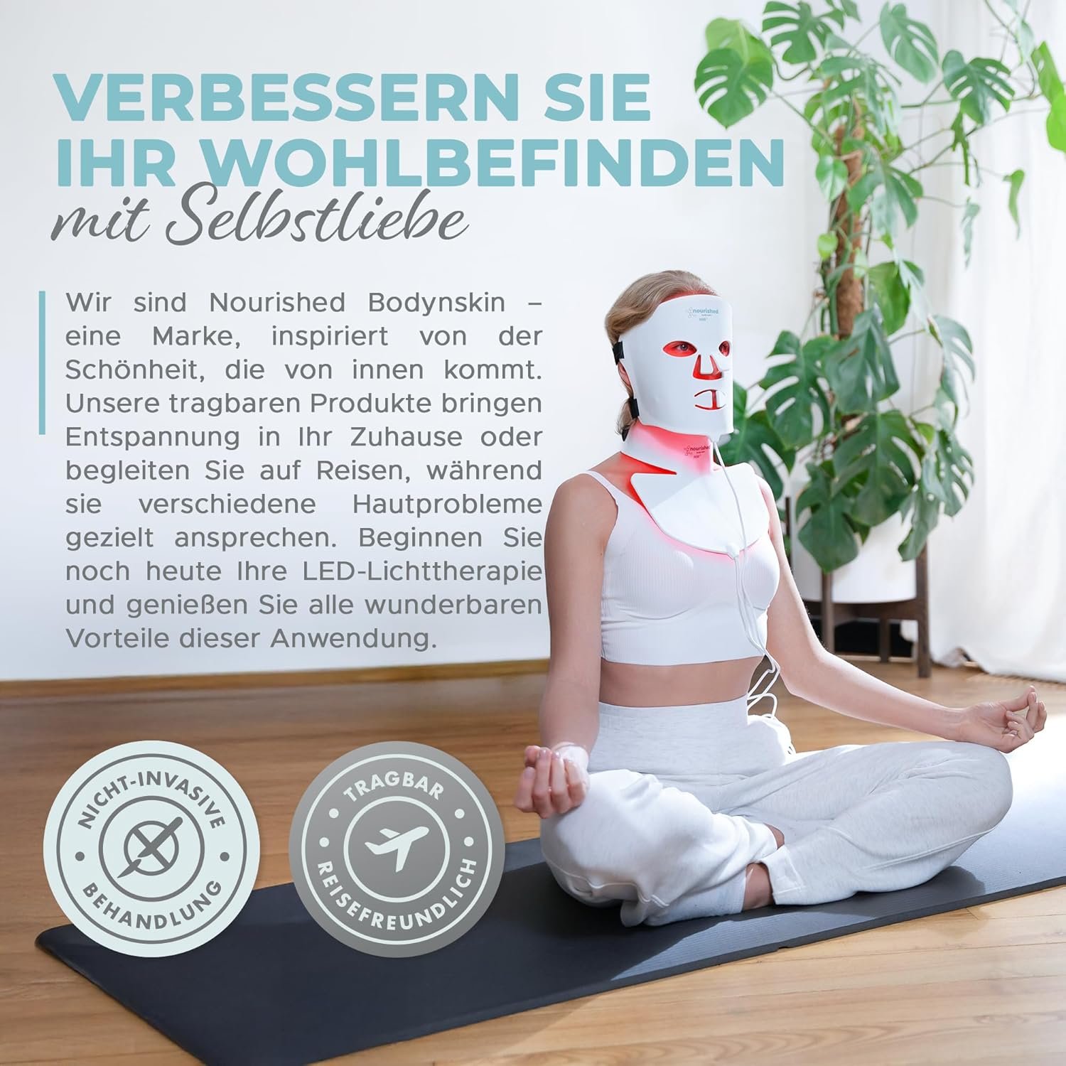 Geben Sie Ihrer Haut die Aufmerksamkeit, die sie verdient – bis hinunter zum Hals. Das Nourished Bodynskin LED-Masken-Set nutzt hochpräzise Nahinfrarot-Technologie (NIR) und medizinisches Silikon, um Zeichen der Zeit dort zu bekämpfen, wo sie zuerst entstehen. Dank des patentierten Designs werden selbst oft vernachlässigte Zonen wie die Lippenpartie und das Dekolleté professionell gepflegt.