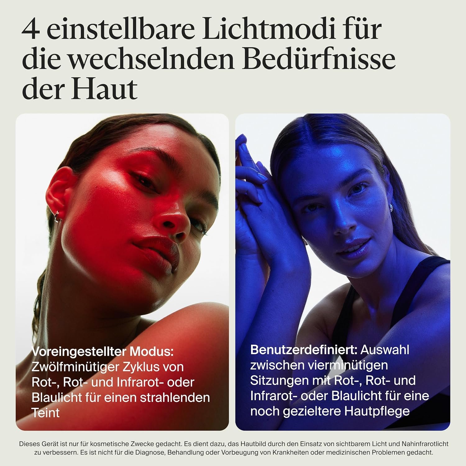 Rotlicht: Mildert feine Linien und sorgt für einen ebenmäßigen Hautton.